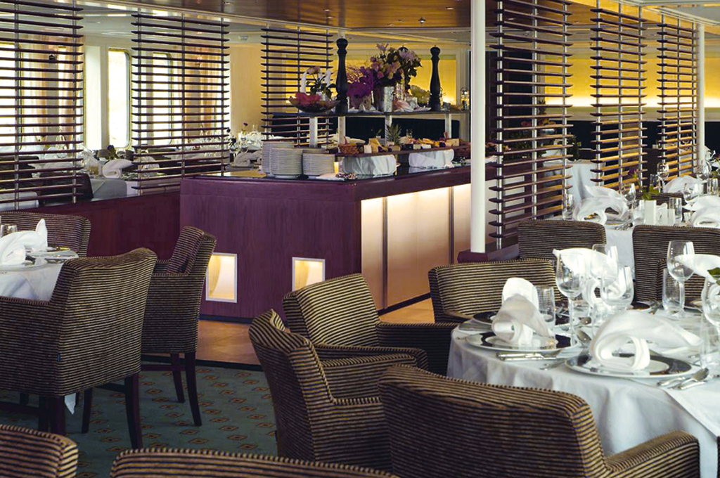 Am elegant mit Weingläsern, feinem Porzellan und kunstvoll drapierten Servietten gedeckten Tisch sitzen Sie im Restaurant der MS Excellence Rhône. Ihr Blick schweift entzückt auf die vorbeiziehende Flusslandschaft und die Weinberge. Gleich werden Sie einige der kostbaren Früchte dieser Weinkultur kosten.